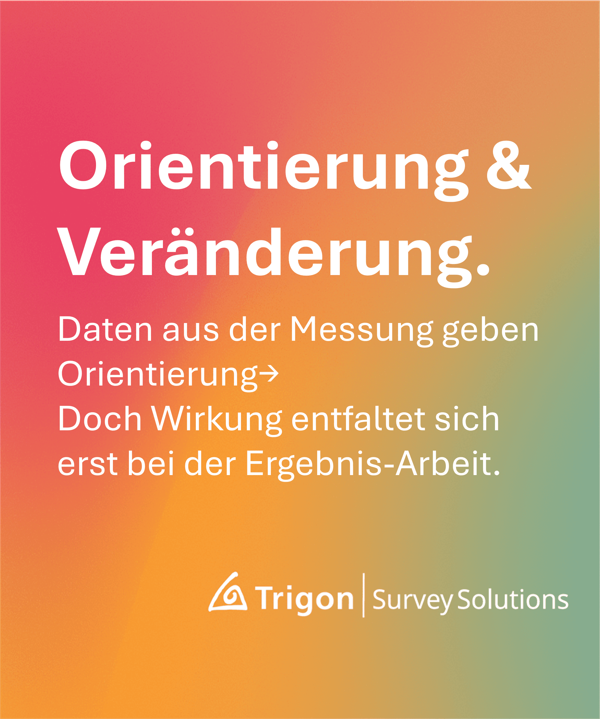 Trigon betrachtete unser Befragungsprojekt aus dem Blickwinkel unserer Strategieausrichtung. Dieser Zugang stellte die Anschlussfähigkeit beim Top-Management sicher. Über unsere Mitarbeiterbefragung wurde ein Dialogprozess eingeleitet, dessen Höhepunkt eine Mitarbeiterveranstaltung mit mehr als 200 Teilnehmern war.